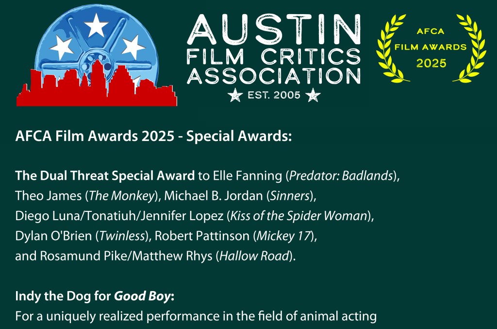 Thurs, Dec. 18th – The Austin Film Critics Association (AFCA) announces its 2025 award winners.